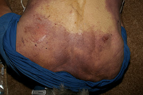 68 year old Nye Frank back. This is a man that has never been known to have a fight. Zero contact with police for any trouble all his life. Ty Reddish attacked and stranguled Nye Frank, Ty grabbed Nye by the head and dropped his legs to pull him down with all his weight. Then while Nye was passed out jumped up and down on him in front of Lee, his knees took the skin off Nye back. edit